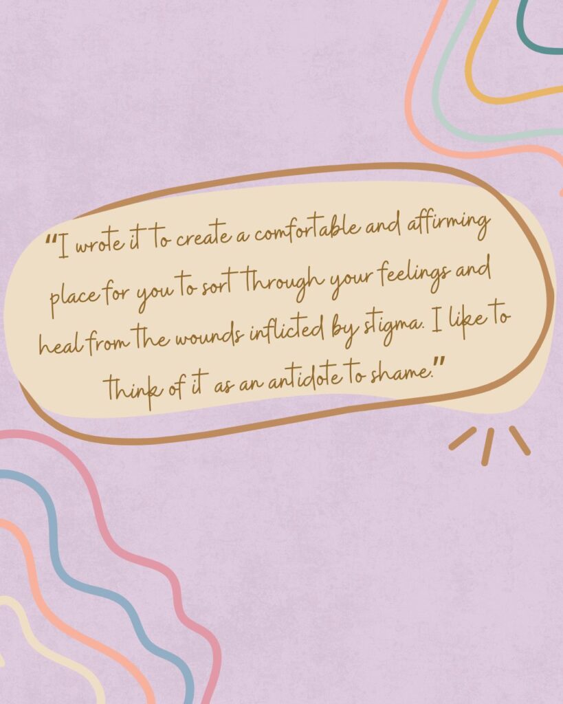 “I wrote it to create a comfortable and affirming space for you to sort through your feelings and heal from the wounds inflicted by stigma. I like to think of it as an antidote to shame.”